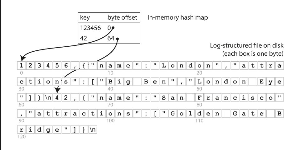 Key idea: Along with appending to the log file maintain a in-memory hashmap that acts as a signpost to the actual keys.
